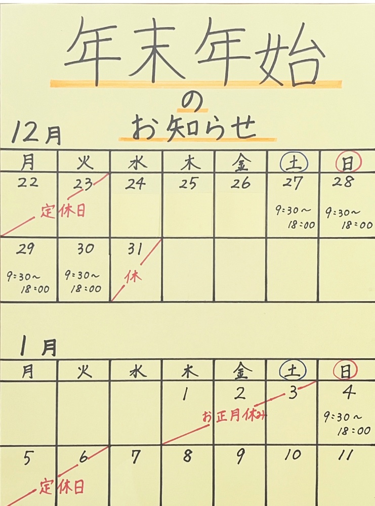 | 営業時間 | 平日:am 9:30〜13:00 pm 15:00〜18:00 土日 : am 9:30〜13:00 pm 14:00 〜18:00 ※電話予約しておりません |